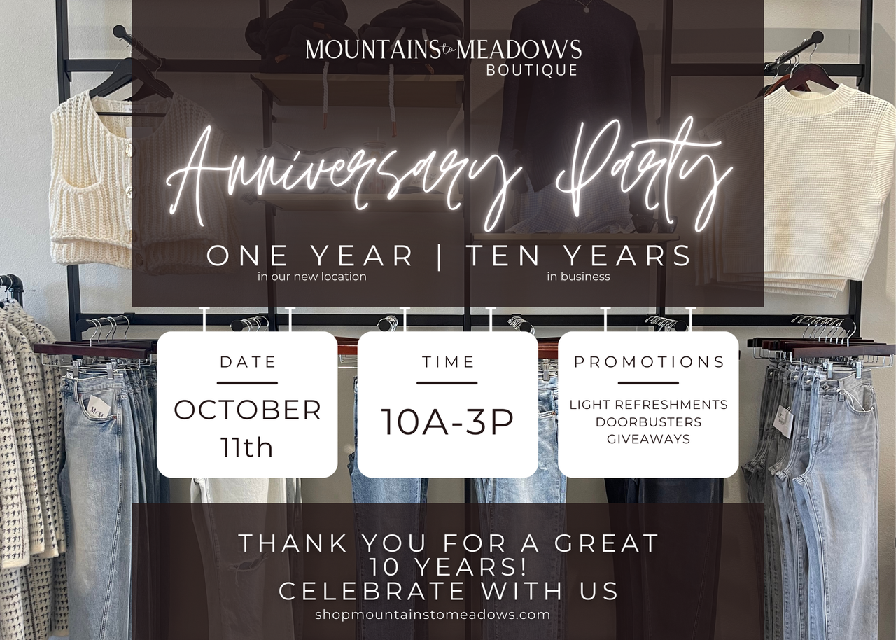 So glad you found us! Formerly E Lifestyle Boutique, Mountains to Meadows Boutique is now located just a few blocks over, at 852 Vandercook Way Longview, WA 98632.
